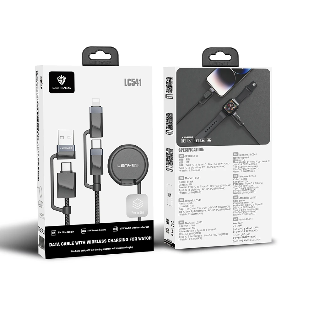 Lenyes LC541, farklı cihazlar için tek bir kablo ile maksimum uyumluluk sunar! USB-A ve Type-C girişleri ile Lightning, Type-C ve akıllı saatler için kablo ihtiyacınızı tek noktada çözer. Bu sayede h Devamını Göster